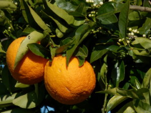 In de directe omgeving staan er verschillende bomen afgeladen vol met sinaasappels, mandarijnen en citroenen, allemaal overrijp.