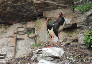 Bij de miradors nesten van zwarte ooievaar ( 4-tal ). Drogende aalscholvers op een rots. Vermoedelijk het nest van een oehoe. En terug duikt de blauwe rotslijster op.