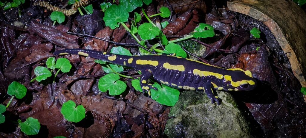 Een zwanger vrouwtje, stil en onaangedaan langs het water. Alsof ze daar al die tijd op mij had gewacht. Salamanders van deze soort baren hun larven levend, een klein wonder dat zich gewoon daar, in dat beekje, afspeelt.
