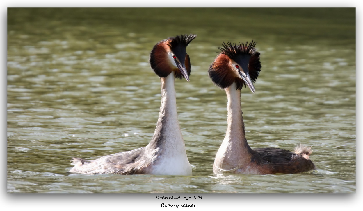 Op een 20-tal meters is een paartje futen hun baltsceremonies aan het demonsteren.